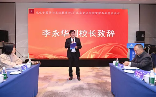 On December 23, 2024, the 5th meeting of the 4th Academic Committee of the Key Laboratory of Optoelectronic Devices and Systems of the Ministry of Education and Guangdong Province (hereinafter referred to as the Key Laboratory) was successfully held at the Shenzhen Shentie Crown Plaza Hotel, with both online and offline participation. Attendees included Vice President of Shenzhen University, Li Yonghua, Academician Luo Xiangang, Chair of the Academic Committee of the Key Laboratory, Academicians Yu Qifeng and Qin Yuwen, Professors Wang Yongtian, Zhao Yong, Li Baojun, Li Zhaohui, Zhou Jianying, Cheng Ya, Zeng Heping, Wei Xunbin, Yuan Xiaocong, Qu Junle, and other members of the Academic Committee, as well as Secretary Lin Bing and Executive Deputy Dean Liu Liwei of the School of Physics and Optoelectronic Engineering, Professor Wang Yiping, Director of the Key Laboratory, and other members of the laboratory.