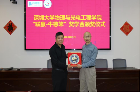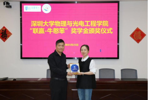 On March 25th, the award ceremony for the “Lianying-Niu Hanben” Scholarship of the College of Physics and Optoelectronic Engineering at Shenzhen University was successfully held in Conference Room 1101, Zhiyuan Building. The event was attended by Mr. Lu Guojie, Deputy General Manager of Shenzhen Lianying Laser Co., Ltd. (hereinafter referred to as “Lianying Laser”), Mr. Lin Bing, Secretary of the Party Committee of the College of Physics and Optoelectronic Engineering (hereinafter referred to as “the College”), Ms. Long Xiaoli, Deputy Secretary of the Party Committee, faculty representatives, and nine award-winning students.