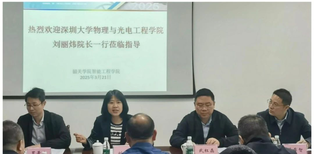 On March 21, 2025, Liu Liwei, Executive Vice Dean of the College of Physics and Optoelectronic Engineering at Shenzhen University, led a delegation including Vice Deans Wu Honglei and Luo Jingting, along with Professor Cai Houzhi, Head of the Measurement and Control Department, to visit the School of Intelligent Engineering at Shaoguan University for a cooperation and exchange meeting. This visit marked the official beginning of a new chapter in deep collaboration between the two institutions, signifying an important step forward in their joint efforts within the field of education. Huang Changzheng, Dean of the School of Intelligent Engineering at Shaoguan University, extended a warm welcome to Executive Vice Dean Liu Liwei and her delegation. He provided a detailed introduction to the school’s development, academic programs, and faculty structure.