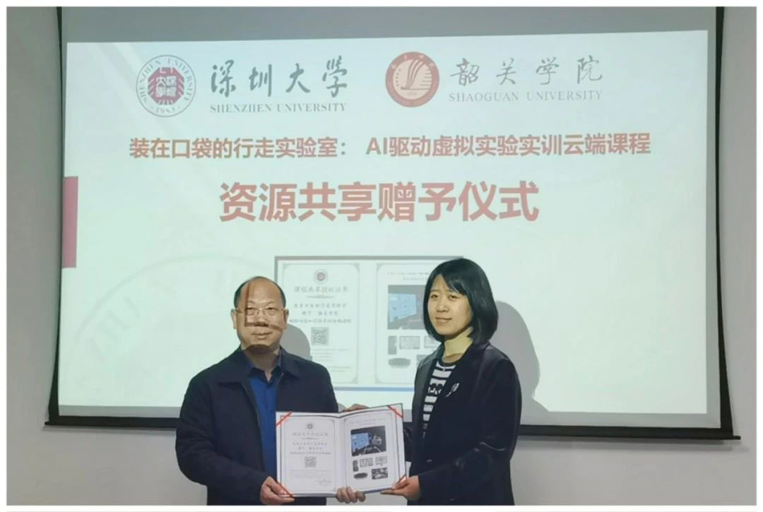 Executive Vice Dean Liu Liwei expressed her strong expectations and commitment to fostering close cooperation between the two schools, and proposed that both sides will carry out in-depth collaboration in areas such as teaching, scientific research, and discipline development. Vice Dean Luo Jingting then introduced the general profile of the College of Physics and Optoelectronic Engineering at Shenzhen University, offering an overview of its programs and strengths. Vice Dean Wu Honglei introduced the college’s innovative educational resource — The Pocket Lab: AI-Driven Virtual Experimental Cloud Courses — and held a ceremony to officially present and share these resources with the School of Intelligent Engineering.