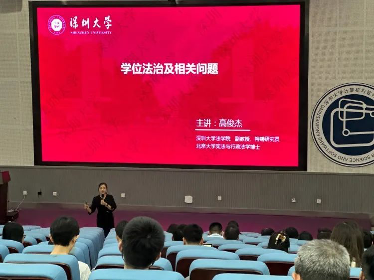 At the beginning of the lecture, Associate Professor Gao Junjie first elaborated on the legislative background, basic content, and core spirit of the Degree Law. She emphasized that the introduction of the Degree Law marks a new stage of legalization for China’s degree system, which is of great significance for improving the quality of degree awarding and cultivating high-level innovative talents. Meanwhile, combining with the actual situation of Shenzhen University, Professor Gao provided a detailed interpretation of the specific application of the Degree Law in degree-related work at colleges and universities.
