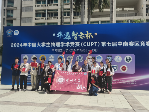 The 7th China Undergraduate Physics Tournament (CUPT) South-Central Regional Competition was held from July 20-23, 2024, at South China University of Technology. The Shenzhen University team, led by three faculty members from the College of Physics and Optoelectronic Engineering—Zhao Gaiqing, Guo Shuqing, and Li Yingzhen—participated in the competition with 14 students. They emerged victorious in their first competition. They was well-prepared, with each team member performing corresponding experimental data analysis and theoretical derivations for their chosen topics. Their poster presentations were meticulously designed and presented. Throughout the competition, the students became more confident and performed excellently, achieving impressive results. The competition selected three teams to participate in the national poster competition, and the Shenzhen University team, with their Magnetic Gear Group project, secured one spot in the national competition!